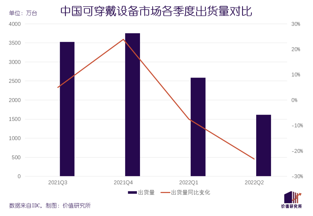 数据机构IDC的报告,可能是一众科技硬件厂商最不想看到的文件——因为IDC已经许久没有带来什么好消息了。果不其然,IDC日前发布的最新一期《中国可穿戴设备市场季度跟踪报告》又公布了一组寒气逼人的数据:今年二季度,中国可穿戴设备市场出货量为2857万台,同比下降23.3%,环比同样出现下滑。