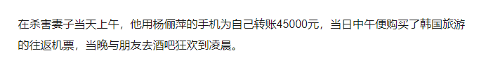 更别说在行凶后当晚,他便支取了妻子的存款,开始了和朋友的狂欢。