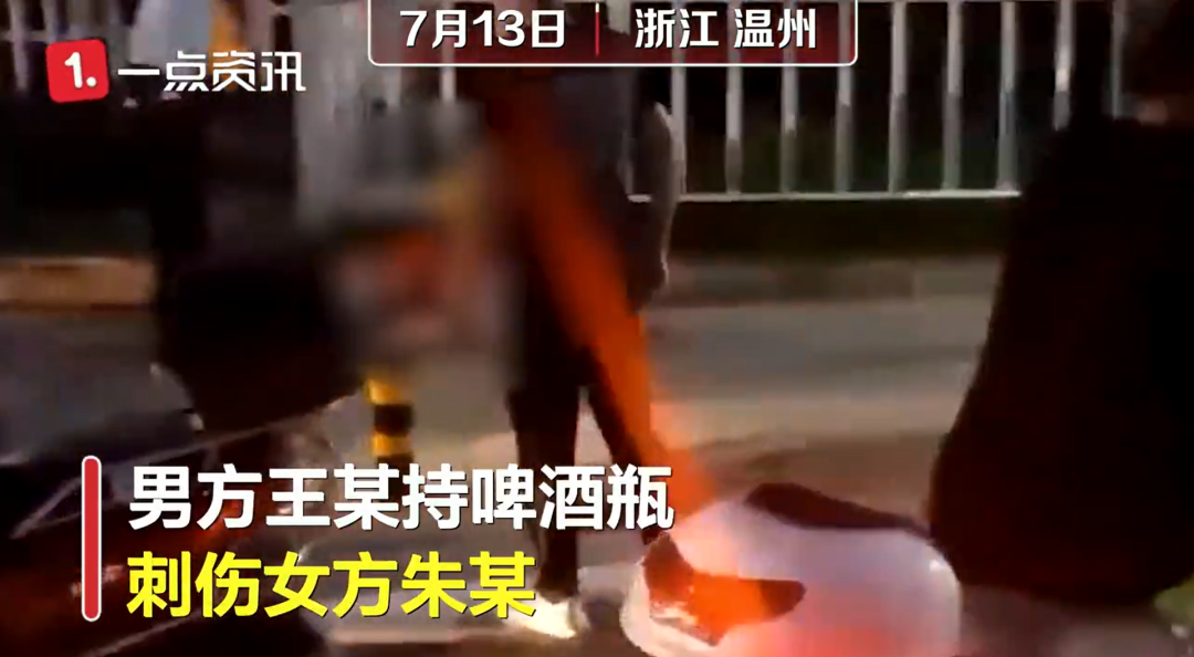 温州的一对情侣在街上同行时发生争吵,男子暴怒中用啤酒瓶将女友当街刺死。