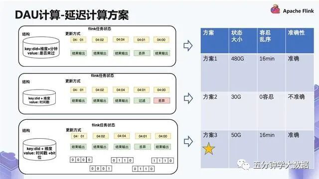方案 2 是 30G 左右的状态大小,对于乱序 0 容忍,但是数据不准确,由于我们对准确性的要求非常高,因此也放弃了这个方案;