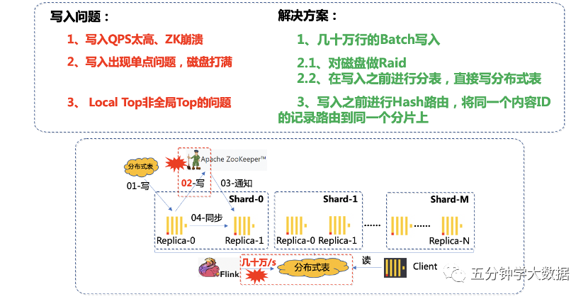 Redis 是哈希槽这种类似一致性哈希的方式,是比较经典分布式缓存的方案。Redis slot 在 Rehash 的过程中虽然存在短暂的 ask 读不可用,但是总体来说迁移是比较方便的,从原 h[0]迁移到 h[1],最后再删除 h[0]。但是 Clickhouse 大部分都是 OLAP 批量查询,不是点查,而且由于列式存储,不支持删除的特性,一致性哈希的方案不是很适合。