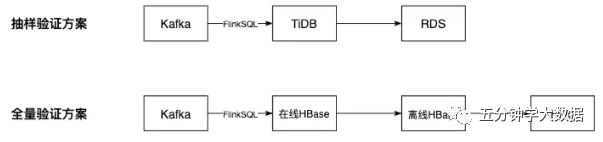 由于实时数仓的数据是无边界的流,相比于离线数仓固定不变的数据更难验收。基于不同的场景,我们提供了 2 种验证方式,分别是:抽样验证与全量验证。如图 3.3 所示