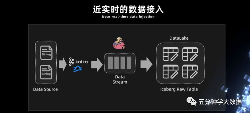 此前需要先进行数据接入,比如用 Spark 的离线调度任务去跑一些数据,拉取,抽取最后再写入到 Hive 表里面,这个过程的延时比较大。有了 Iceberg 的表结构,可以中间使用 Flink,或者 spark streaming,完成近实时的数据接入。
