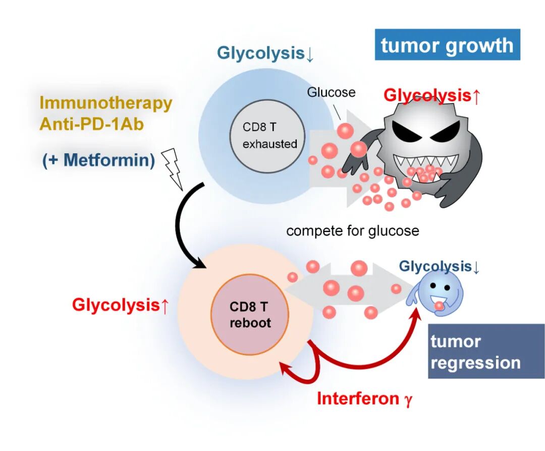 二甲双胍(Metformin)通过抑制肝脏葡萄糖的产生而具有降低血糖作用,是治疗2型糖尿病的一线药物,也是全球最常用的处方药之一,全世界有上亿人在服用二甲双胍。作为一个老药,人们对于二甲双胍的研究从未停止过,研究热度也是日益高涨,而二甲双胍也总是不断地刷新我们对它的认知,并持续给人们带来一个又一个的惊喜。近年来,许多研究显示,二甲双胍除了具有降血糖作用外,还有减肥的功效。许多临床前研究和临床研究还观察到二甲双胍在抗衰老、治疗认知障碍、以及心血管疾病等方面具有有益作用,因此二甲双胍也被人们称为“神药”。近来有不少研究发现,二甲双胍似乎能够增强抗肿瘤免疫反应,但迄今为止,其潜在的免疫学机制尚不清楚。近日,日本冈山大学大学的研究人员在 Journal for ImmunoTherapy of Cancer 期刊发表了题为:Mitochondrial reactive oxygen species trigger metformin-dependent antitumor immunity via activation of Nrf2/mTORC1/p62 axis in tumor-infiltrating CD8T lymphocytes 的研究论文。该研究发现,二甲双胍能够激活抗肿瘤免疫细胞CD8+浸润性T淋巴细胞(CD8TIL)的增殖,还能促进其分泌杀伤肿瘤细胞的干扰素-γ,改变肿瘤微环境以促进肿瘤细胞的死亡。这些发现有力地表明了使用二甲双胍作为一种药物来增强癌症患者抗肿瘤免疫力的可能性。该研究的通讯作者 Heiichiro Udono 教授在父亲因癌症去世口,一度要放弃自己的癌症研究。他在参加一个癌症与缺氧的研讨会上,灵感一闪而过。他意识到之前的研究通常忽略了Warburg效应。Warburg效应是指癌细胞的一种特殊的代谢特点,癌细胞的糖酵解异常活跃,即使在氧气充足的条件下,癌细胞糖酵解一样活跃。Warburg效应促进了癌症的生长,因此,将癌症中的Warburg效应恢复成正常的代谢,将有助于癌症治疗。在这个会上,他还了解到二甲双胍可能有助于癌症免疫。此时,他将这两者联系了起来。Udono教授和他的团队对癌细胞系和可能导致二甲双胍依赖性抗肿瘤免疫的可能生物分子的敲除小鼠模型进行了一系列实验。还探索了暴露于二甲双胍时CD8+浸润性T淋巴细胞(CD8TIL)的细胞内机制,并评估了不同的生物标志物。考虑到CD8TIL产生干扰素来攻击癌细胞,他们还评估了相应的干扰素水平。研究团队发现,二甲双胍会导致CD8+浸润性T淋巴细胞(CD8TIL)的线粒体中的活性氧的产生并增加糖酵解,而线粒体中的活性氧激活了 CD8TIL 的生长,从而促进了这些抗肿瘤免疫细胞的增殖。这种促进作用是通过参与抗氧化应激反应的转录因子Nrf实现的。此外,研究团队还排除了二甲双胍通过细胞凋亡产生抗肿瘤作用。二甲双胍还会导致 CD8TIL 强烈分泌干扰素-γ,从而改变肿瘤微环境以促进肿瘤细胞的死亡。此前的文章中也多次梳理了“二甲双胍”的作用,包括: