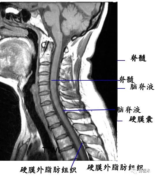 行走于其中的脊神经根呈圆形、长圆形低或等信号影