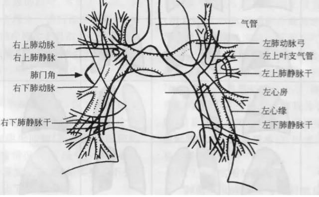 左肺门亦分为上、下两部。上部由左肺动脉及其分支、左上叶支气管和左上肺静脉及其分支构成;下部由左下肺动脉及其分支构成,常被心影所遮盖。