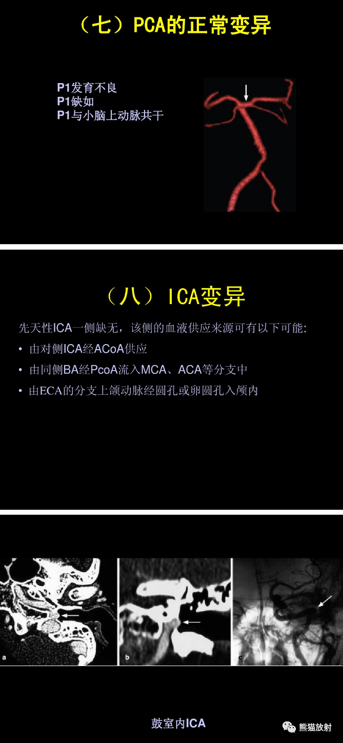 大脑前动脉 ACA,大脑中动脉 MCA,大脑后动脉 PCA,前交通动脉 ACoA,后交通动脉 PCoA,颈内动脉 ICA