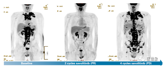 在经过了2个疗程的治疗后,川建国的病情出现了部分缓解,MET拷贝数从3.0降至1.4。但也同时出现了其他新的低频基因突变:MET D1228H(5%),MET D1228N(5%),MET D1228V(35%)和MET Y1230C(3%)。