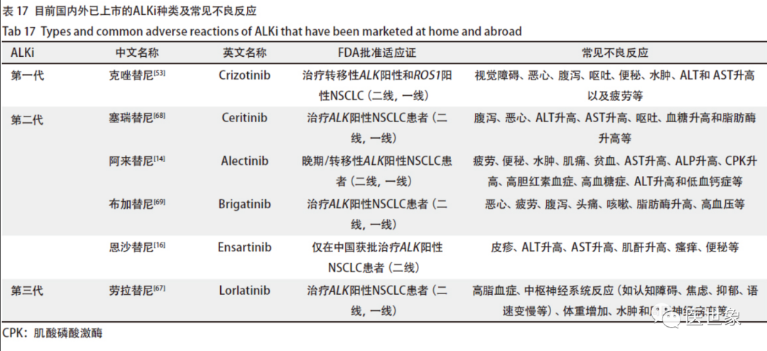 本文由四川省肿瘤学会肺癌专业委员会及四川省肿瘤性疾病医疗质量控制中心牵头,针对国内已经获批上市的4种ALKi,回顾和总结其相关临床研究并参考国内外文献,结合专家的临床实践经验,总结了ALKi不良反应的临床管理建议,为ALKi的临床应用提供指导策略和意见。
