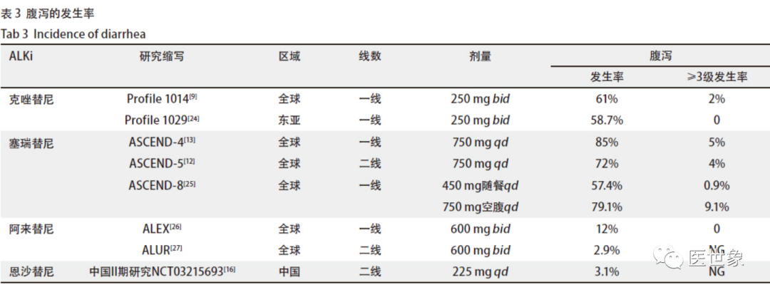 腹泻是ALKi的常见不良反应,总体发生率较高,在9%-85%,其中以1级-2级不良反应为主。