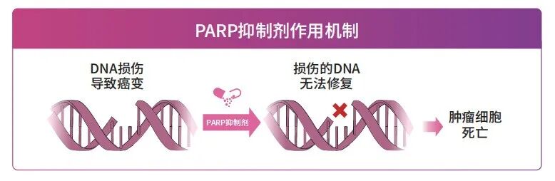 PARP是一种参与单链DNA修复的蛋白质, 通过修复碱基切除来帮助修复DNA单链断裂。双链DNA损伤的主要修复机制是同源重组修复。
