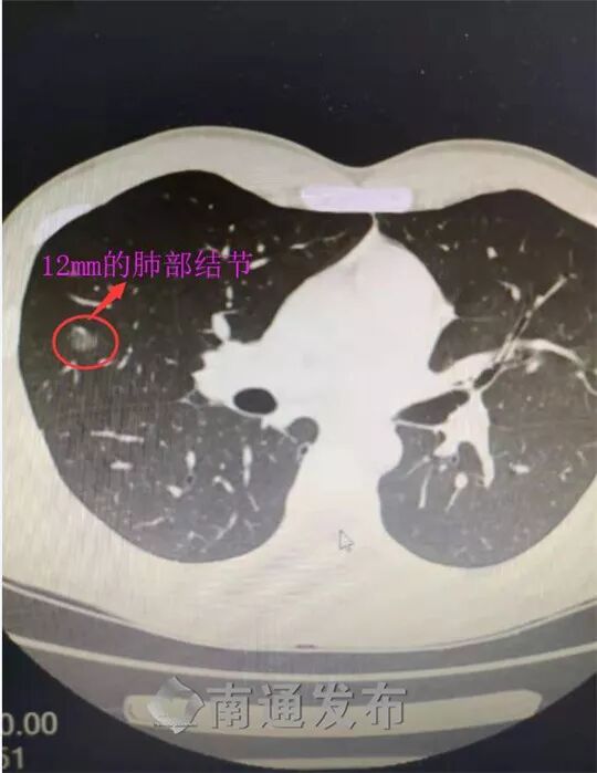 小伙子说,行!CT扫描结果让医生都紧张,小伙子两肺都有结节,其中右中肺上的结节有12mm。