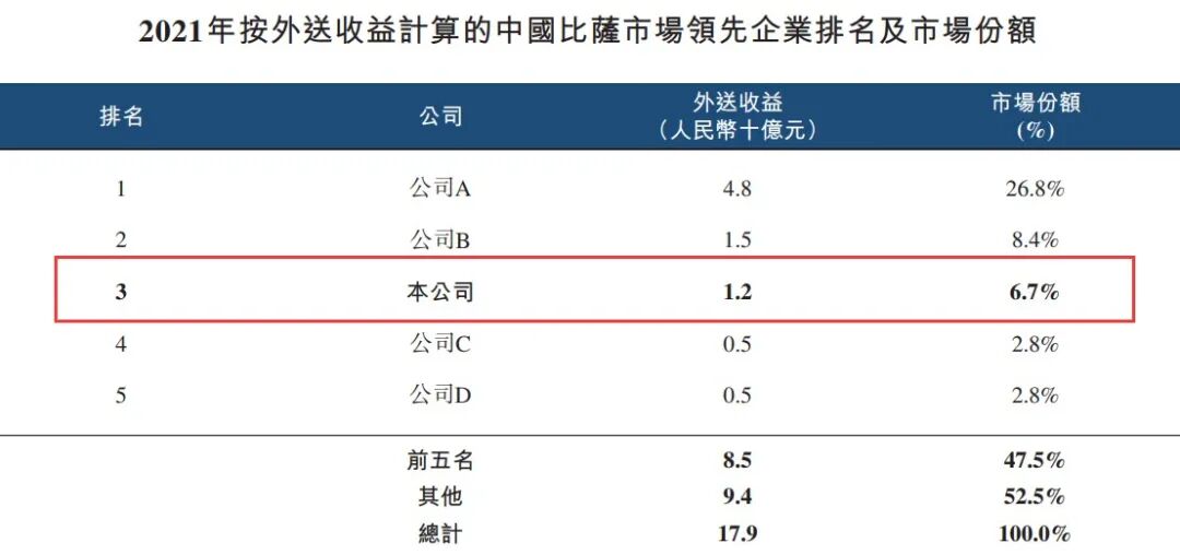 2019-2021年,以及截至2021年及2022年6月30日止六个月,达美乐外送订单产生的收益分别占其同期总收益的70.0%、74.5%、73.2%、72.9%及71.5%,大幅高于2019年至2021年的行业平均水平40%至50%,所占市场份额也更多。