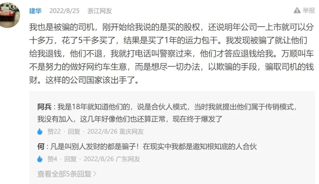 就在此前的8月,中国经济网报道,采取运力包干缴费模式的多位司机,因听信平台“刷单”为上市造数据,而向平台支付几万元费用,却突然被告知“无法退回本金”,强迫这些司机将被扣的钱款转换成借款或股份。