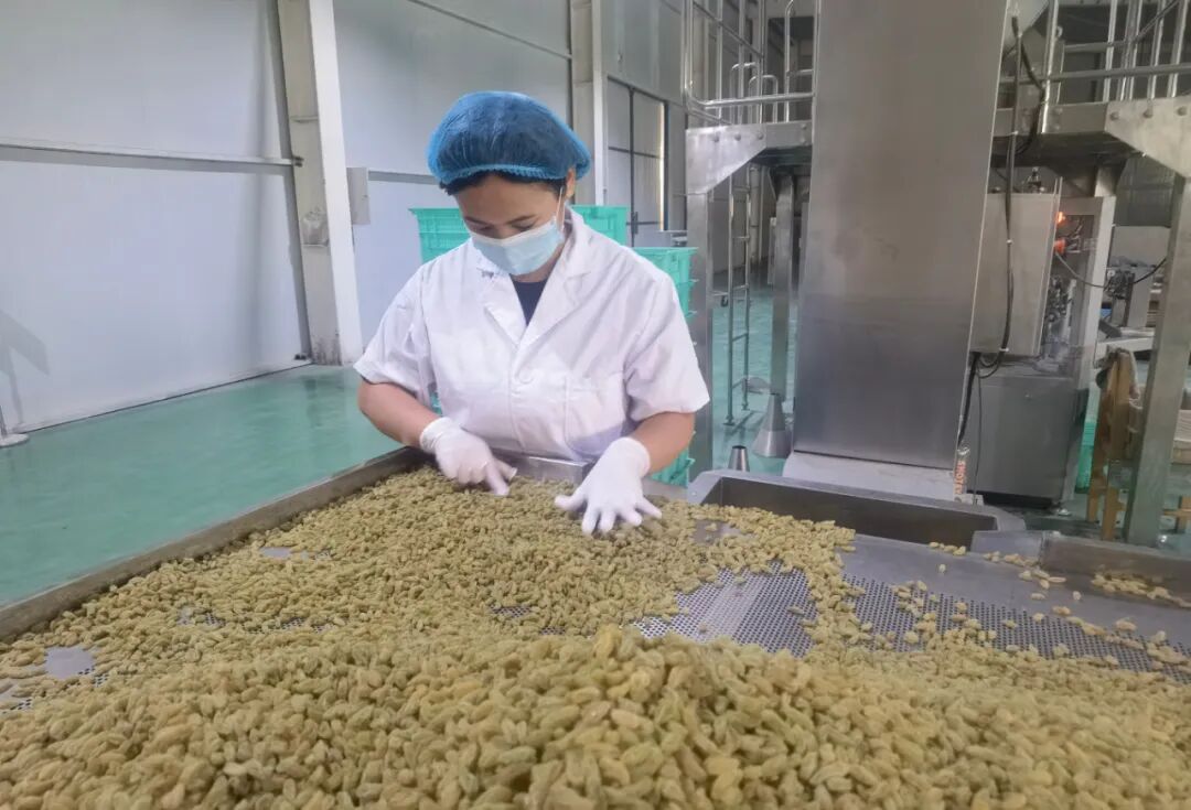与此同时,在吐鲁番市果珍诚果业农民专业合作社生产车间内,机声隆隆,葡萄干正经历着打把、去石、磁选、色选等一道道工序。“我们合作社人少,大部分社员已经复工复产,目前处于满负荷生产状态。”该公司负责人吕敬阳说,目前合作社对员工实行全封闭式管理,所有工人进入车间前必须做好佩戴口罩、洗手、消毒等防疫措施,切实做到做好疫情防控工作的同时开足马力保生产。
