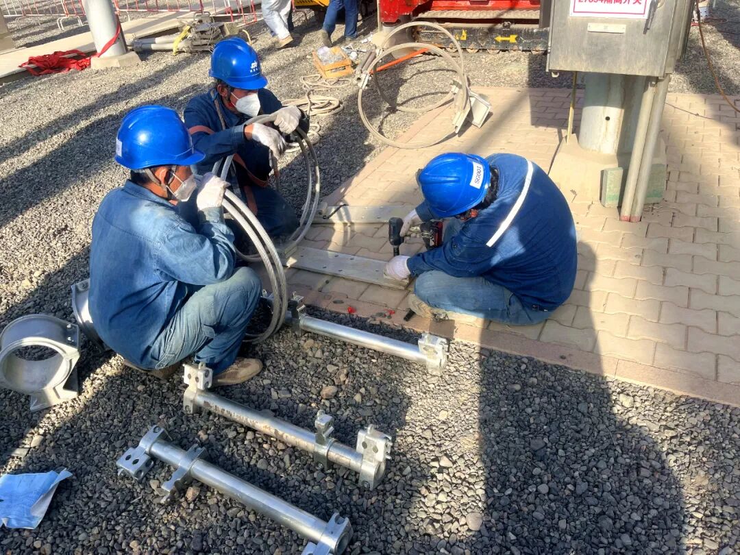 11月13日,国网吐鲁番供电公司员工正在220千伏七泉湖变电站开展设备改造。鲁番日报融媒体中心通讯员 马瑞 摄
