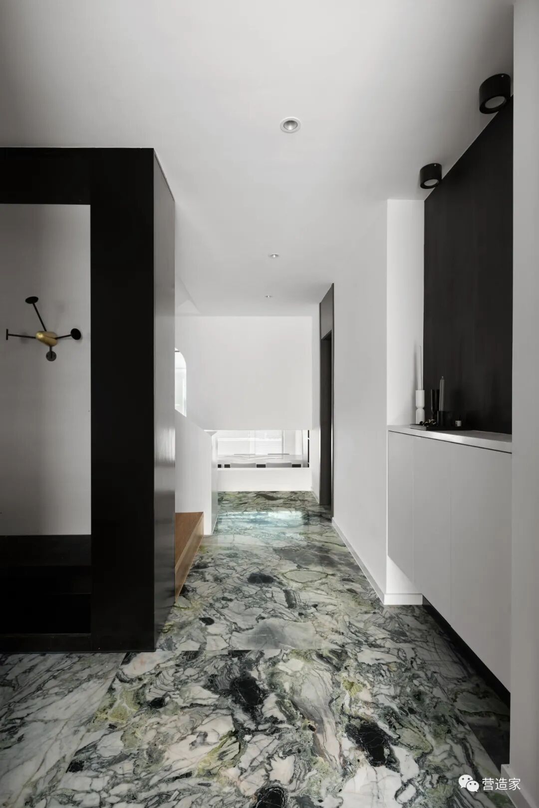 地面炫目的大理石花纹,如同万花筒般梦幻,在这极度的张扬中,简约的黑白线条始终贯穿其中,张弛有度。