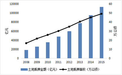 图六:历年土地抵押融资金额及面积