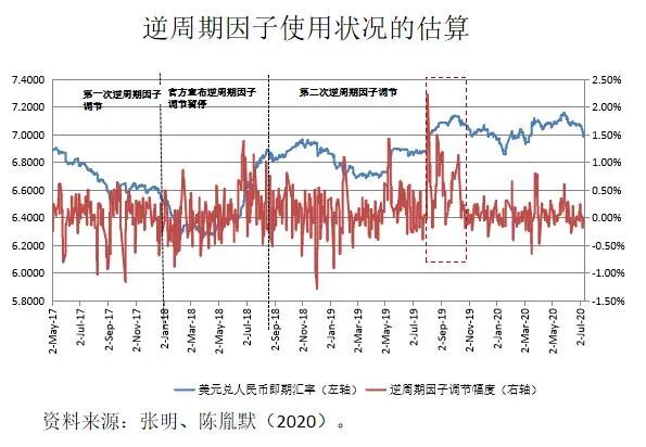 具体到“811”汇改以来中间价形成机制的调整,最早是让中间价等于前日收盘价;2016年初实施“收盘价+篮子汇率”的定价机制,2017年初增加了货币篮的货币种类,缩短了参考货币篮的时间;2017年5月26日引入逆周期因子,2018年1月暂停逆周期因子。后来又因为升值压力的逆转,重启了逆周期因子。