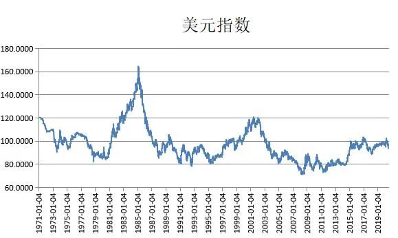 第一,从1971年美元黄金脱钩之后,长时段的美元指数呈现出三落三起的周期。从经验来看,每次美元指数牛市持续的时间在拉长,但是累积上涨的幅度在放缓,说明美国相对于其他发达国家而言,竞争力的差距在缩小。