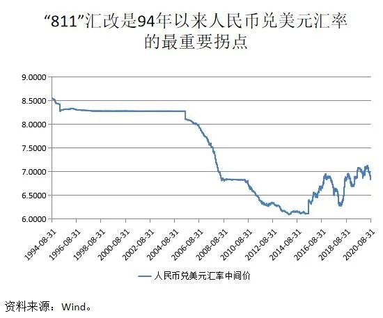从长时段的人民币兑美元汇率走势来看,2015年“811”汇改的确是一个非常重要的拐点。在此之前,人民币兑美元汇率要么盯住,要么升值;在此之后,人民币兑美元的波动性显著放大,总体上呈现出波动中贬值的特征。