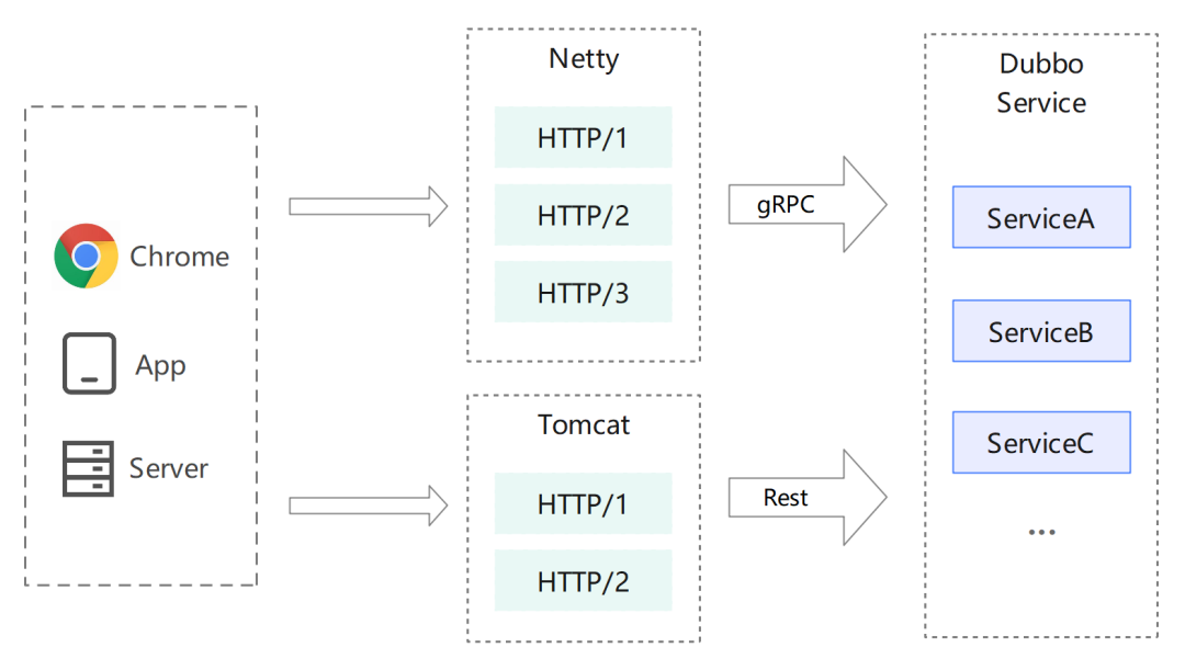 云原生与跨语言互操作性要求:随着云原生技术的普及,系统需要对 HTTP 协议有更深层次的支持,并具备跨语言的通信能力,然而传统 Dubbo 在这一点上并未原生优化。