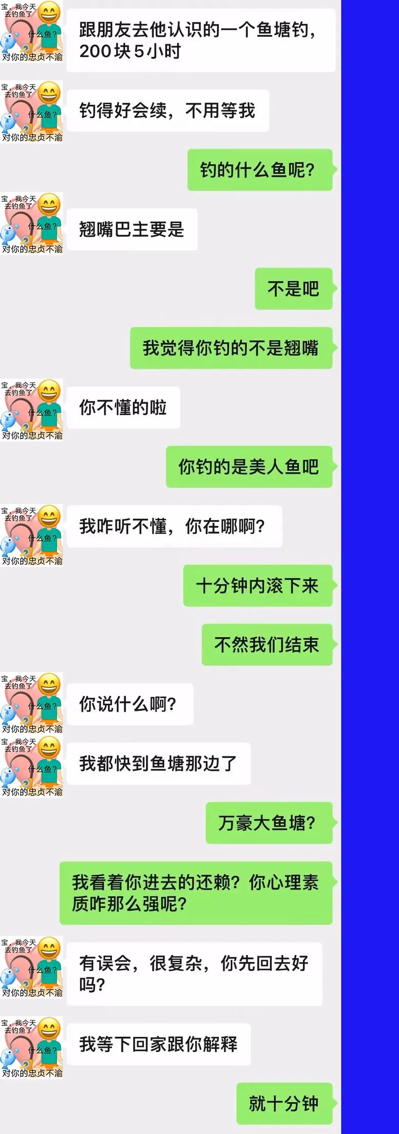 此时我百分百确定他压根没有去钓鱼!!!