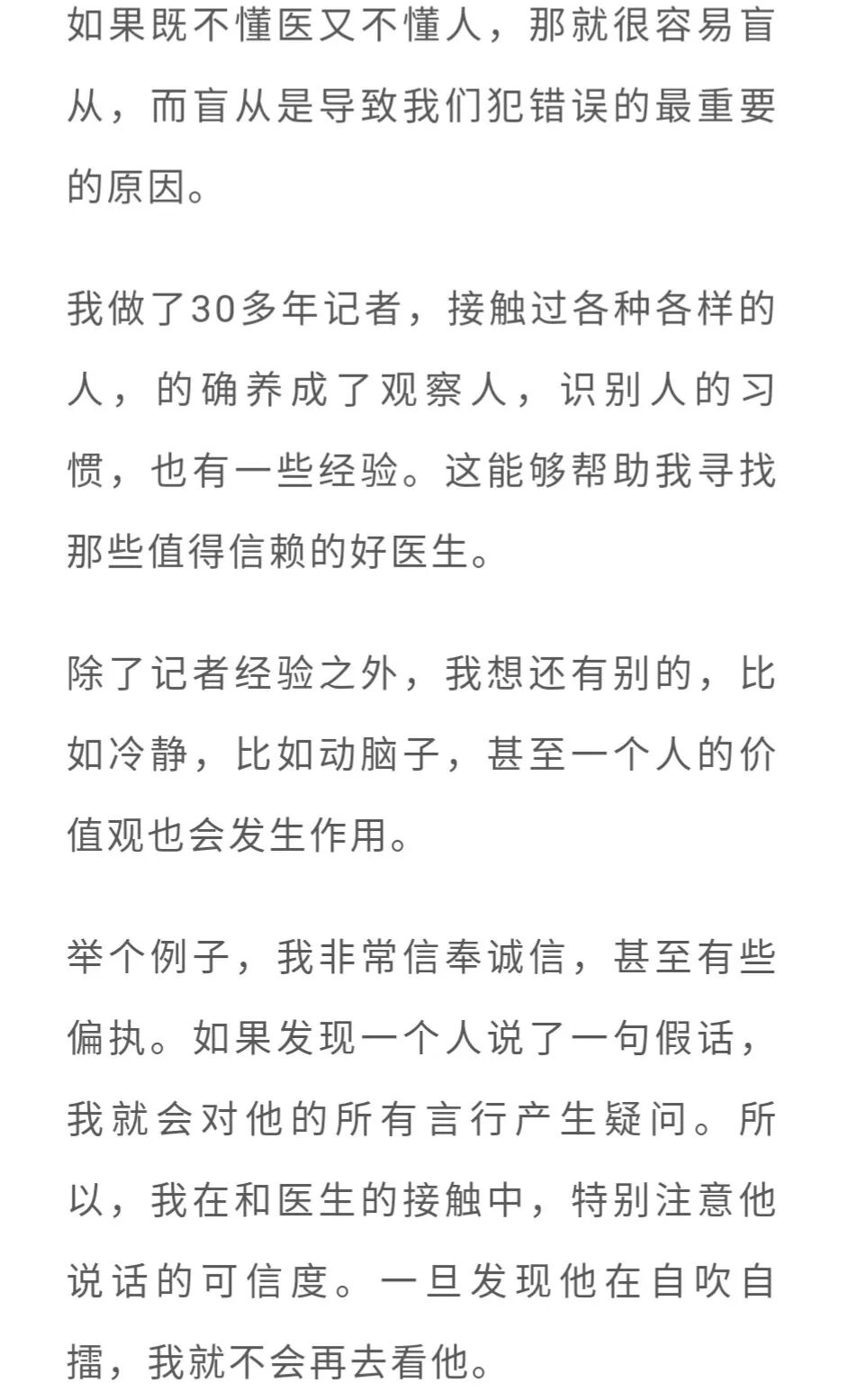 作为病人,我们不懂医,但我们应当懂人,应当知道什么样的医生是可信的,什么样的医生是靠不住的。