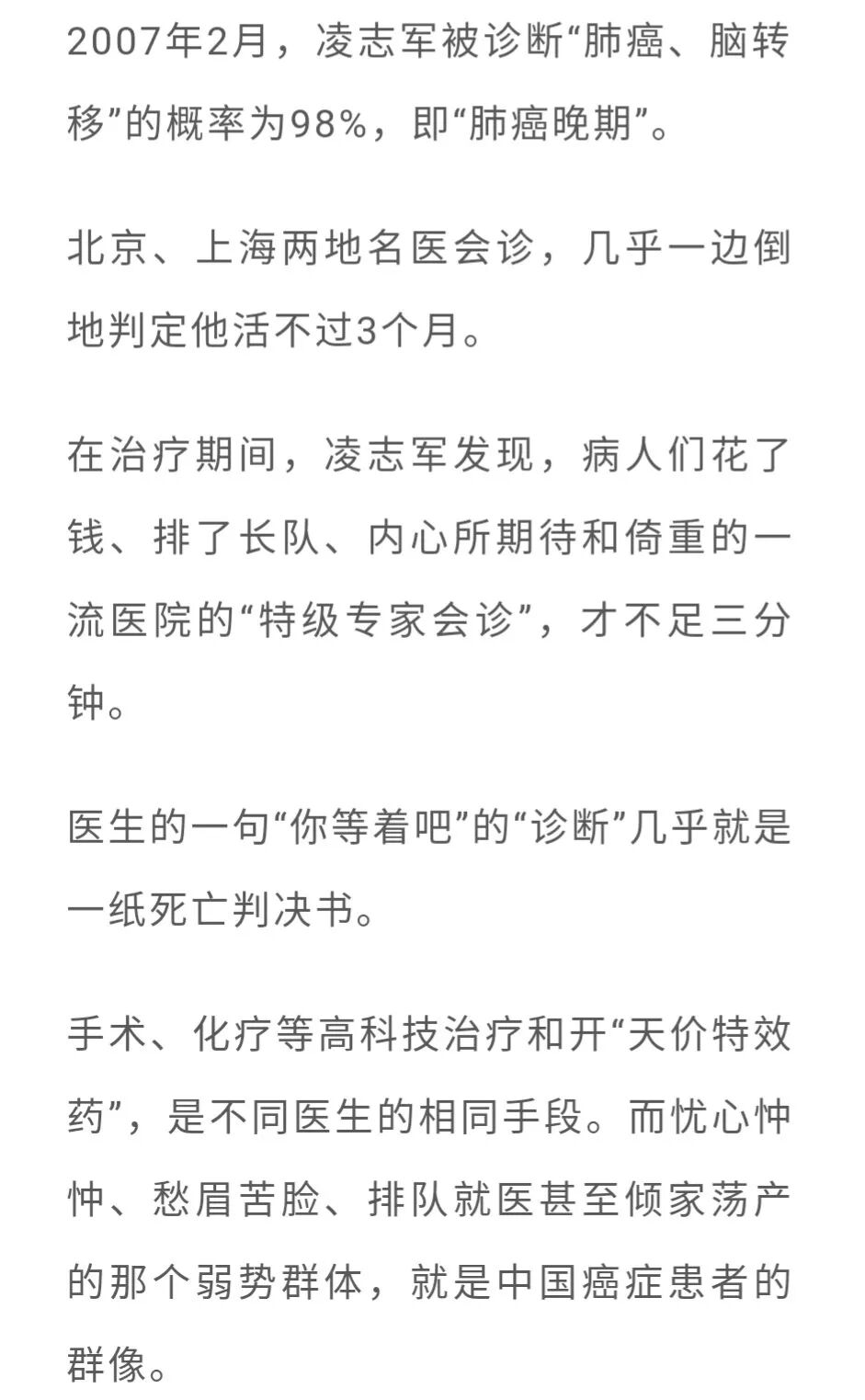 今天推荐人民日报记者凌志军先生的抗癌感悟《2007年癌症晚期,医生说活不过3个月,我为何现在依然健康?》,但愿对正患癌的朋友能有所借鉴。