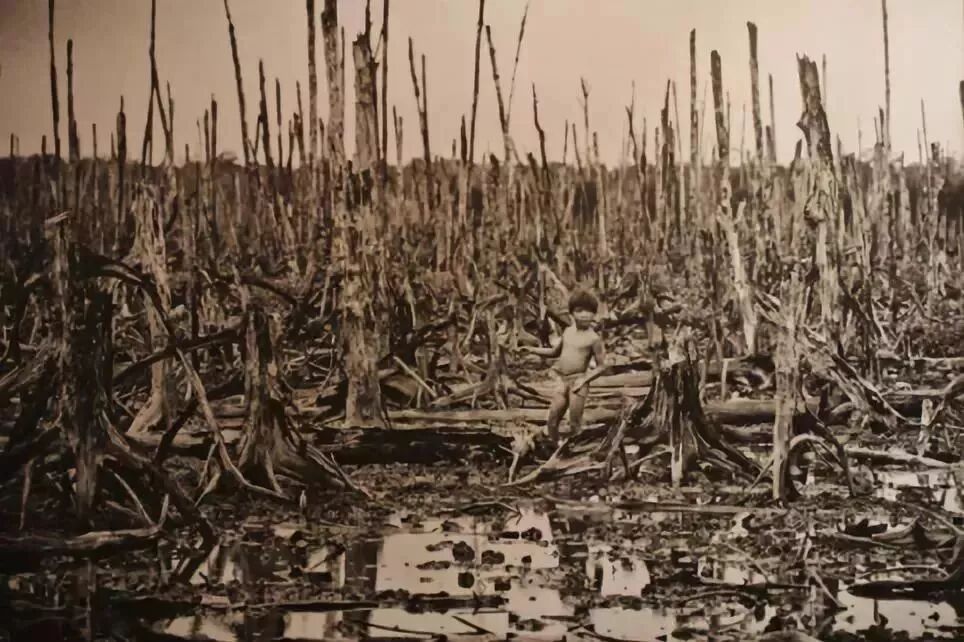 美国大兵开着飞机,将大量孟山都生产的橘剂倾洒在越南的丛林中,使得大量林木瞬间枯黄,一片衰败,几乎寸草不生。