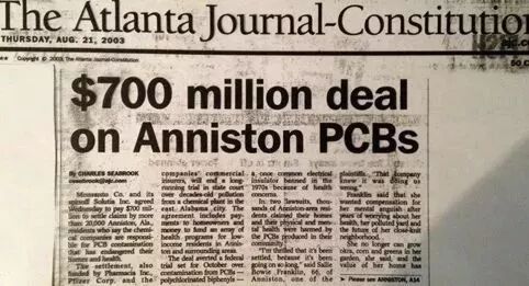 孟山都生产PCB的美国小镇,安妮斯顿镇已经成了“死亡小镇”。