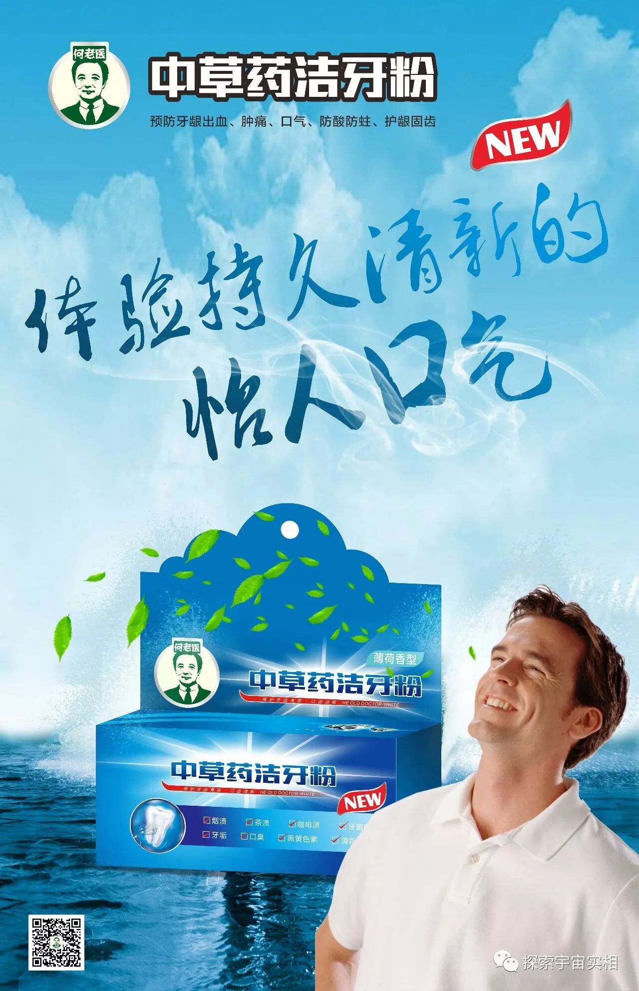 扫描二维码可以咨询购买何老医洁牙粉