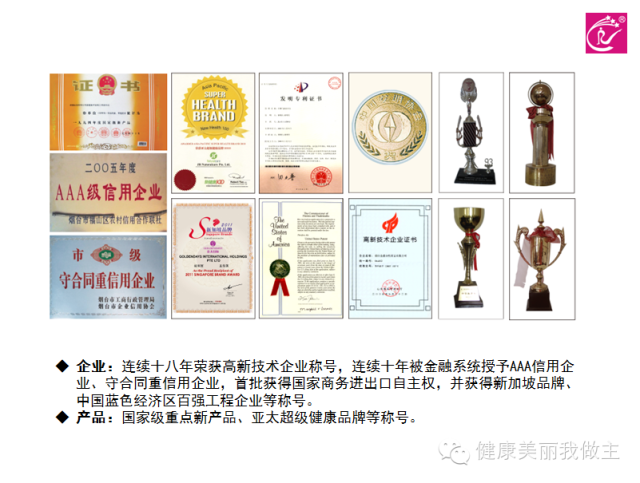 企业连续十八年荣获高新技术企业称号,连续十年被政府和金融系统授予AAA 信用企业、守合同重信用企业,首批获得国家商务部进出口自主权,并获得新加坡品牌、中国蓝色经济区百强工程企业等称号。雪莲药垫及生态保养产品先后荣获国 家级重点新产品、亚太超级健康品牌等称号。金天国际更凭借完善的运营系统和创新的商业模式在2012年获得商务部特许经营许可权。