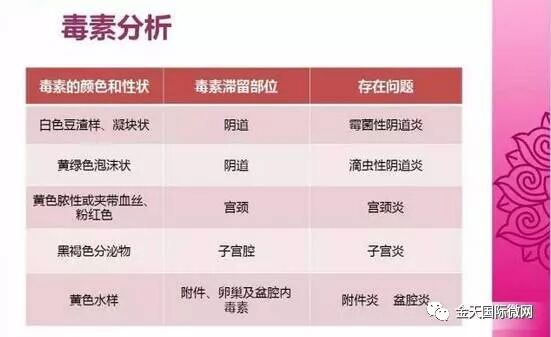 1、黄色水样排泄物:盆腔或附件排出的毒素,有盆腔炎或盆腔积液的尤为明显。