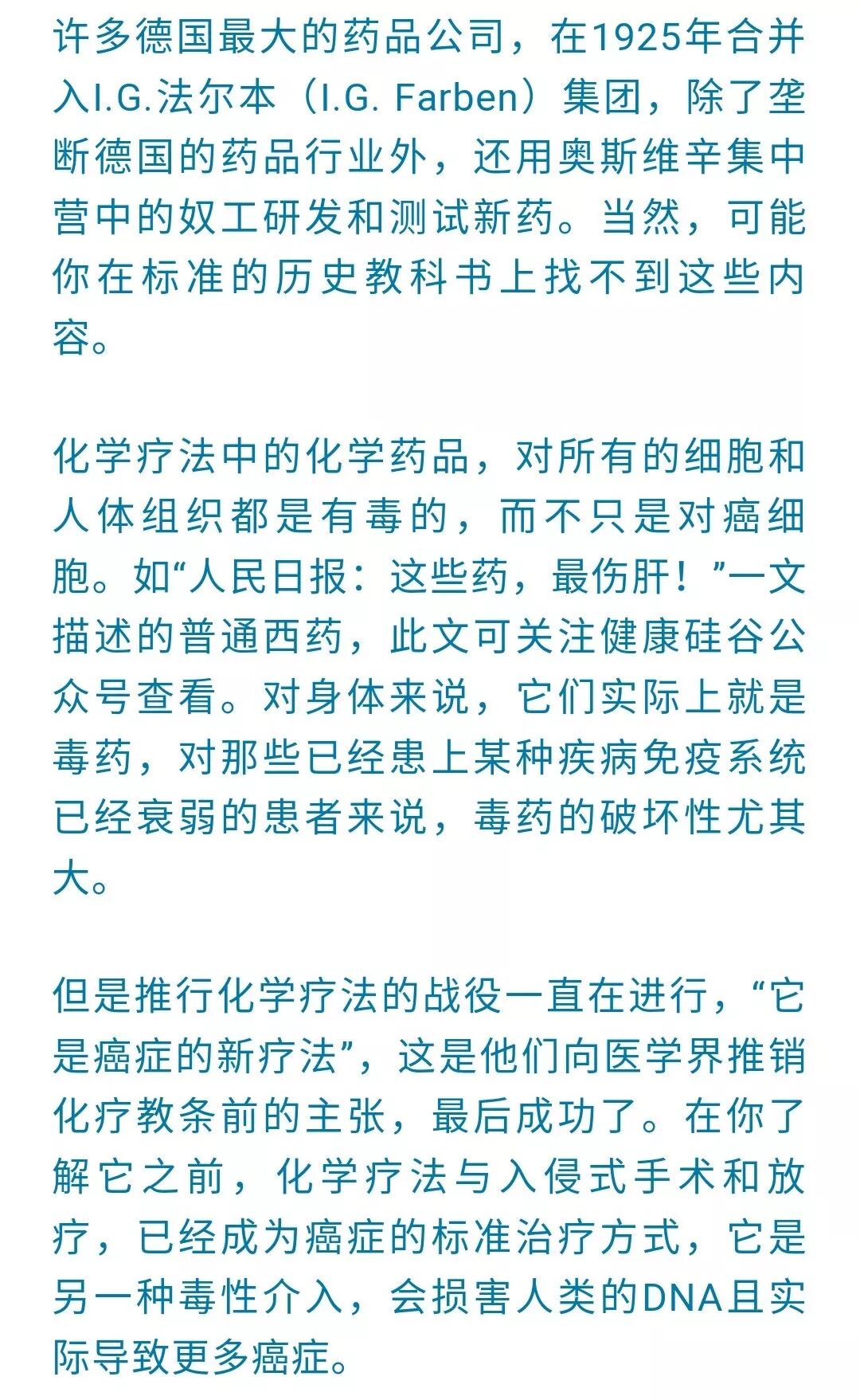 华盛顿州塔荷马诊所的创始人兼医疗主管,医学博士乔纳森·V·赖特说:“专利药物不适合人体,所有巨型制药公司都是分子的分子的分子的专利持有者,那些分子看似适合人体,好像可以对身体做些什么,其实对身体有巨大的伤害。如果我们想让自己现在的身体保持健康,我们只能用适合身体的物质和能量,使用专利药物是没有道理的。”