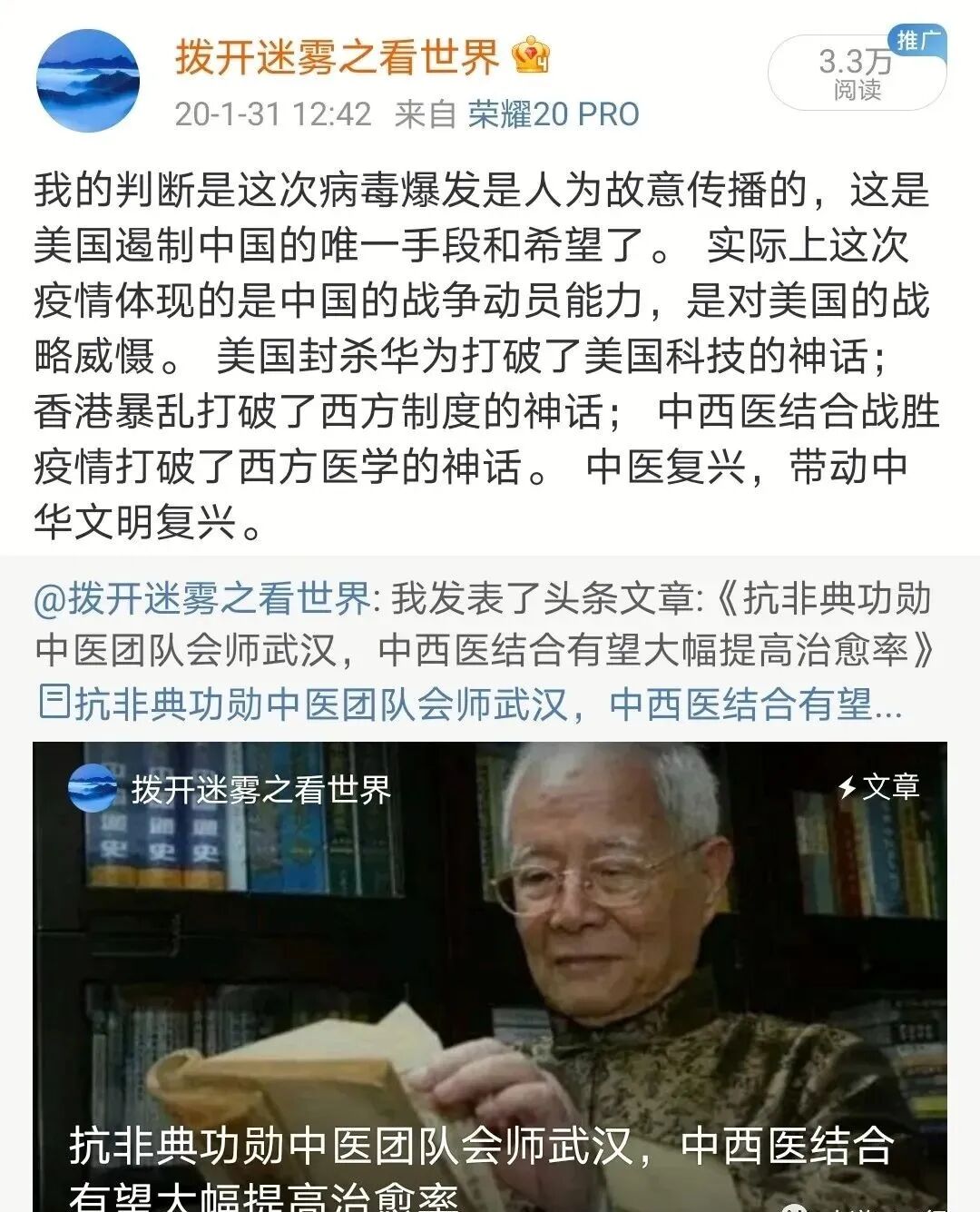 提要:主流媒体承认中医在非典和新冠治疗中的卓越贡献,为中医正名拉开序幕。