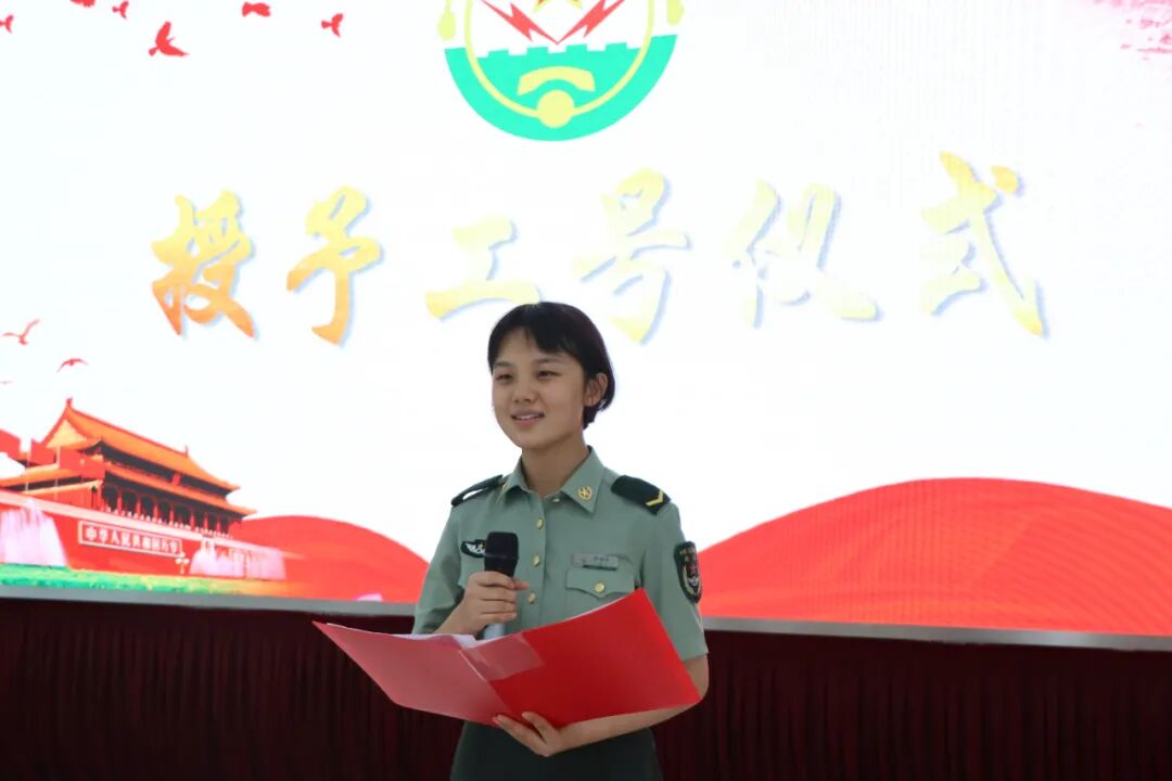 新兵李婉婷代表新话务员表决心:“刚踏上军旅的起点,我们就被你们扎根工位、默默奉献的精神所感染,这股精气神既是对我们的激励,也是我们将要赓续传承的传统……工号交给我,老兵请放心!”