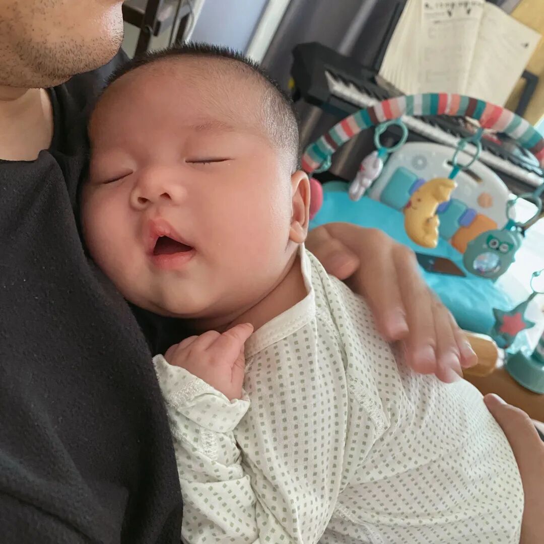 脸圆滚滚的,胳膊的肉一节一节,小眼睛也知道四处看,好玩儿极了。
