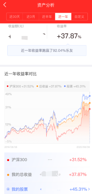 并且,我看了自己近一年的收益率,是37%+,也已经超过预期。