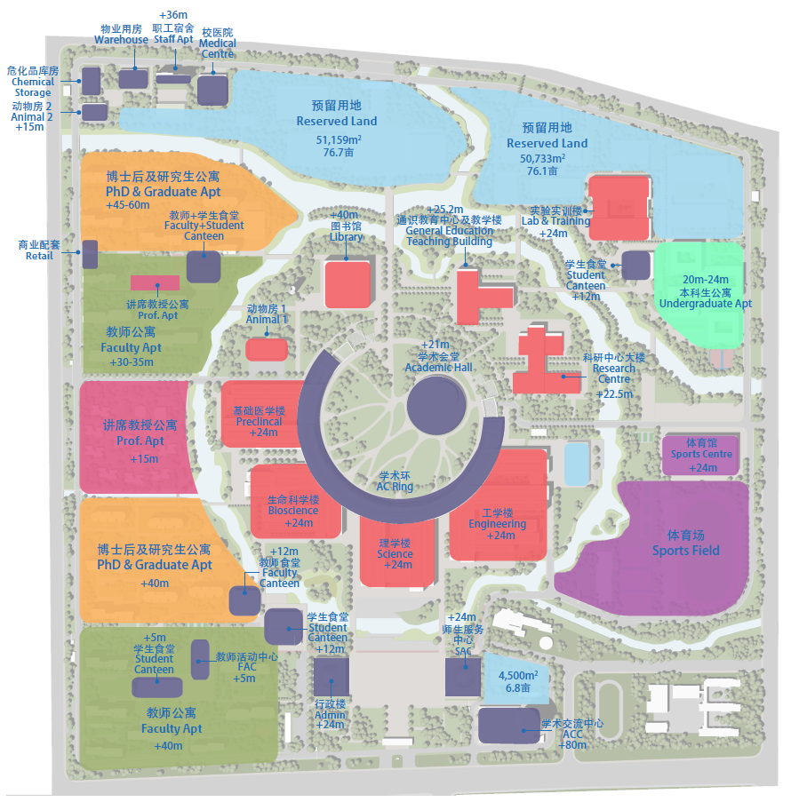 “学术环”是一个C形的半圆环建筑,连接起基础医学楼、生命科学楼、理学楼、工学楼等,建筑面积约23.5万平方米,今后这里将设置300个左右的各类实验室。
