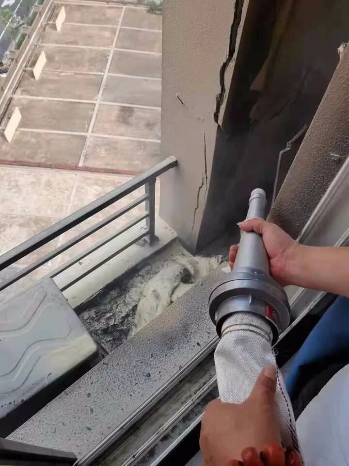 因为平时参与过消防演练,王卢男和同事们知道,接下来还要排除复燃的可能。电话业主同意后,他们破门进入,发现果然有复燃迹象。而此时,空调外机外墙、房间玻璃由于温度过高,已经出现开裂。
