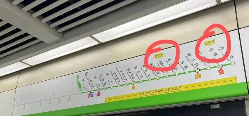 而就在前几日,有网友爆料在4号线车站站厅内,已经张贴了4号线全部站名表。眼尖的网友发现, 在“独城生态公园”和“金家渡”站铭牌上方贴着“暂缓开通”字样。这意味着4号线二期明石路至池华街区段开通后,“金家渡站”和“独城生态公园站”暂时不会开通,也就是说金家渡站暂时无法进行换乘。
