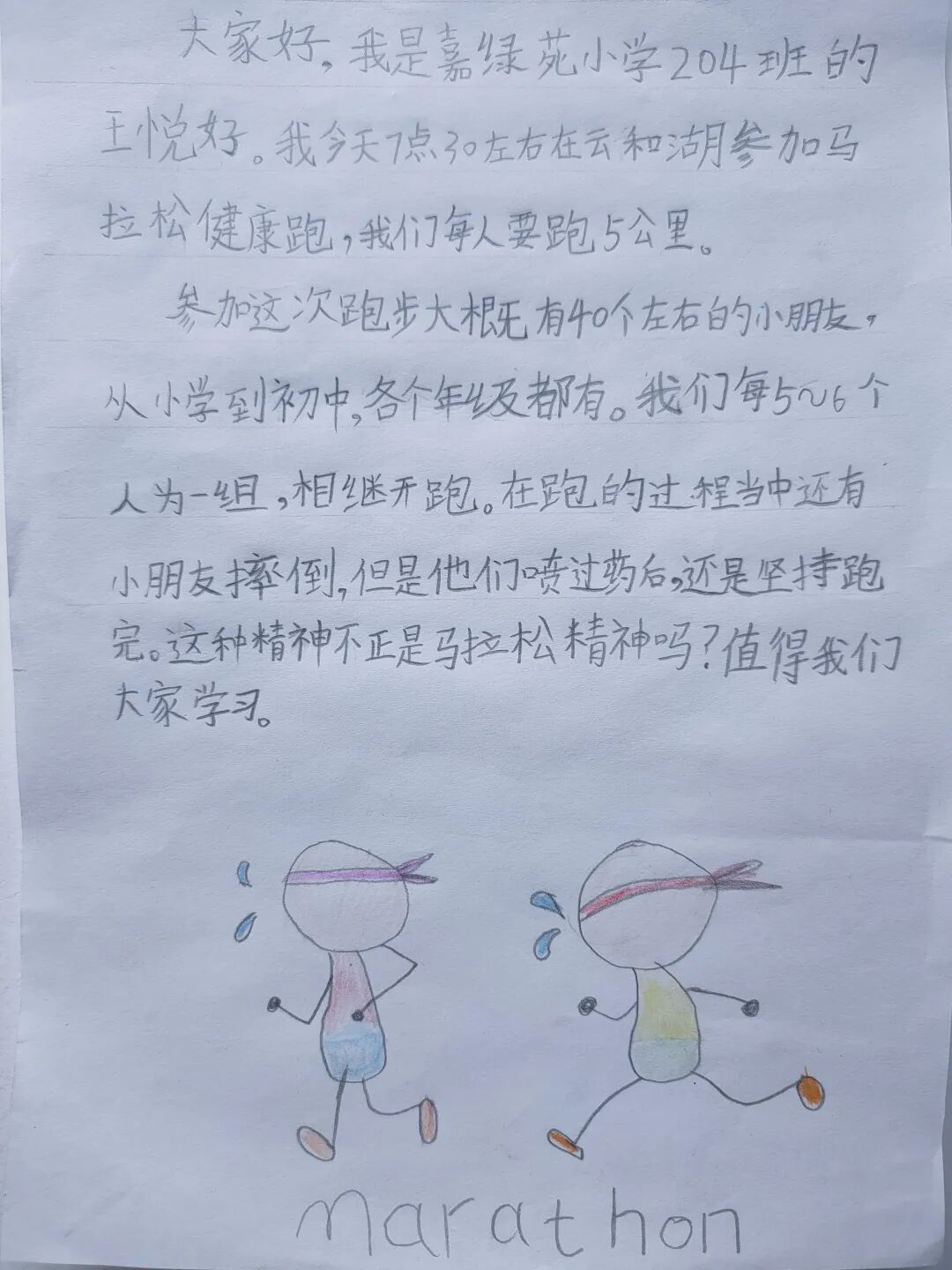 她还在文末手绘了两个可爱的奔跑小人,童趣十足。
