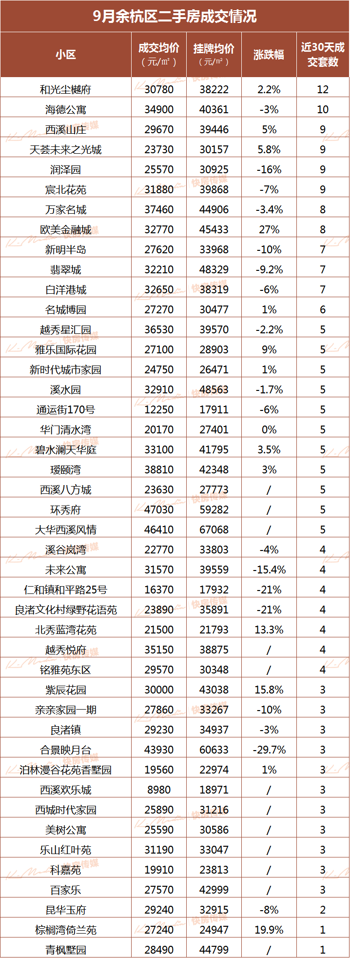 8月西湖、余杭、拱墅二手房成交榜出炉!三墩、良渚三墩又有2个新馆对外开放,共4个!羽毛球、乒乓球、篮球三墩2所新学校投入使用!紫金港中学、文新学前教育领办