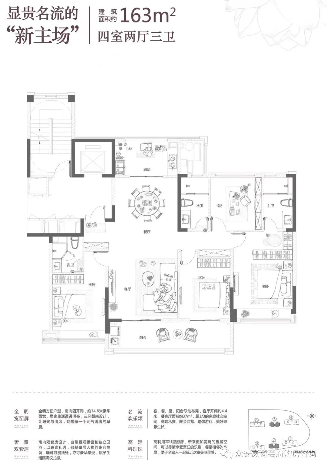 建面约163㎡的大四房,正是“增一分则长,减一分则短”的终极改善黄金户型。