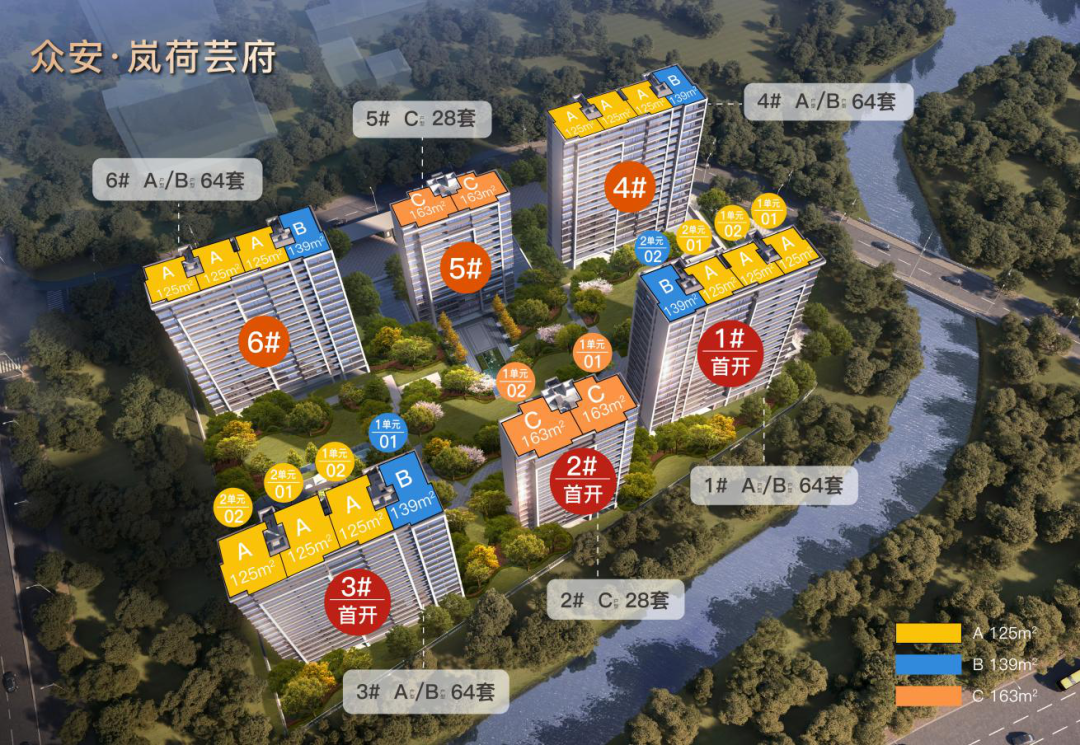 众安·岚荷芸府|西湖区|紫荆天街旁|限价36800两梯两户|全架空|沿河景观 125-163方 纯改善小区