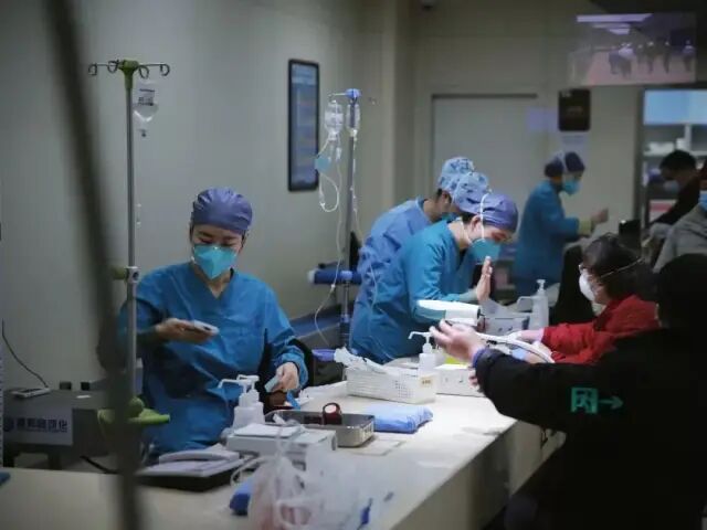 而随着感染患者增加,医务人员纷纷“阳”了,在非战斗性减员最严重的时候,诊疗工作却没有可削减的内容,能削减的只有休息时间——不吃、不喝、不上厕所。