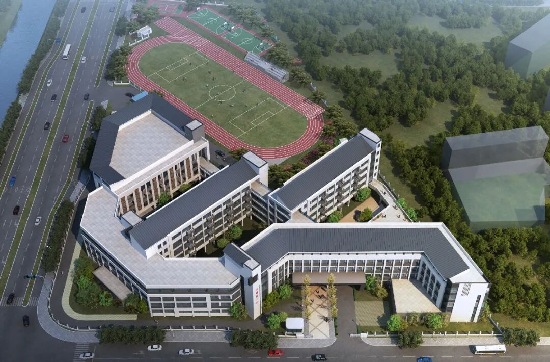 项目由教学楼、图书馆、报告厅、行政办公楼、综合楼、体育馆、食堂、校园绿化及含213个机动车停车位的地下停车库等建筑组成,并设置了250米环形跑道田径场、室外篮排球场等运动设施,总建筑面积为3.3万平方米。
