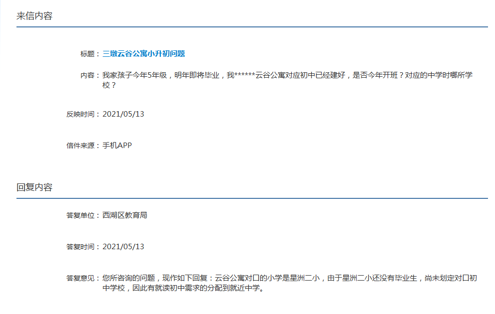 问:我家孩子今年5年级,明年即将毕业,我三墩云谷公寓对应初中已经建好,是否今年开班?对应的中学时哪所学校?