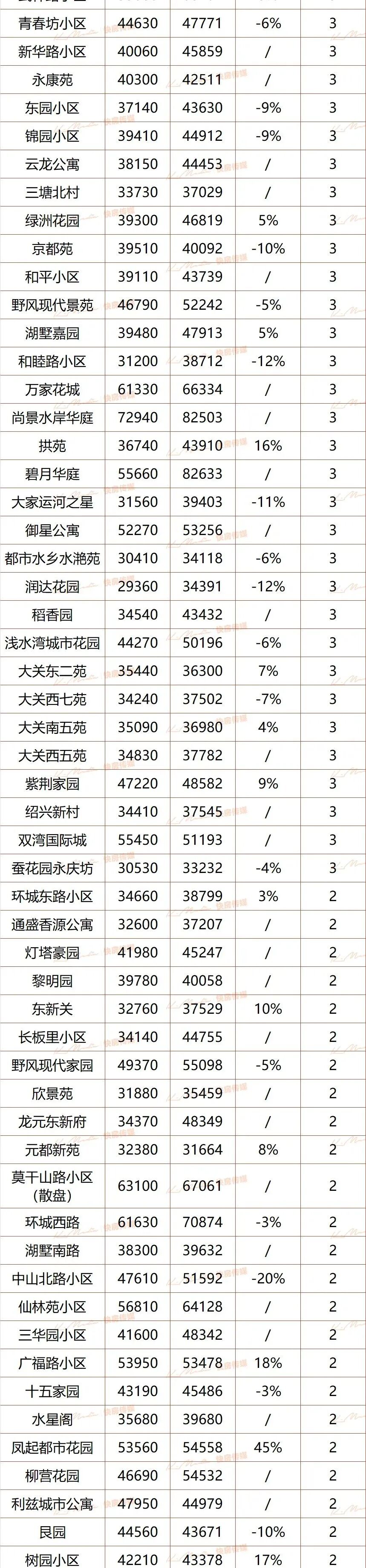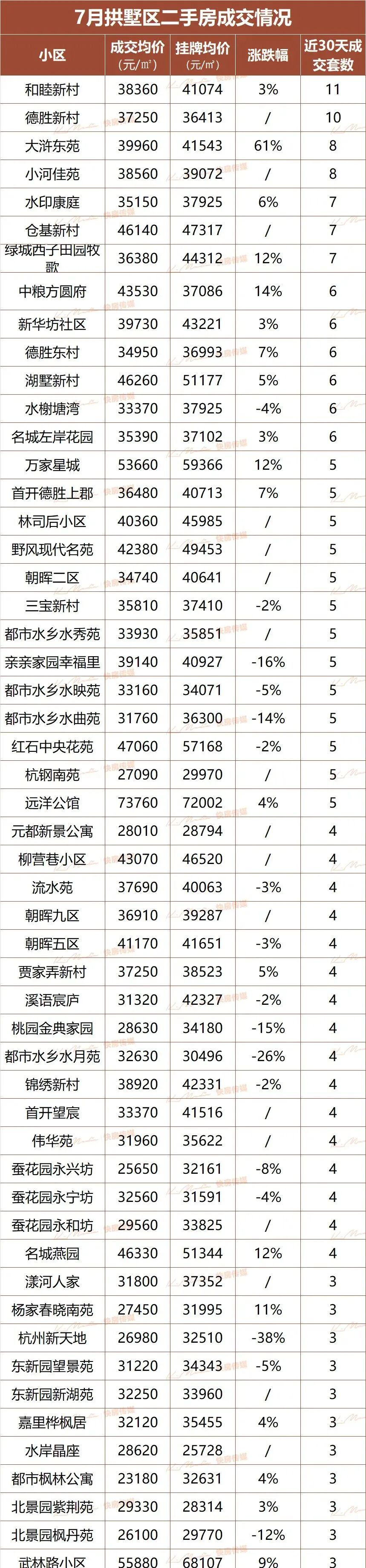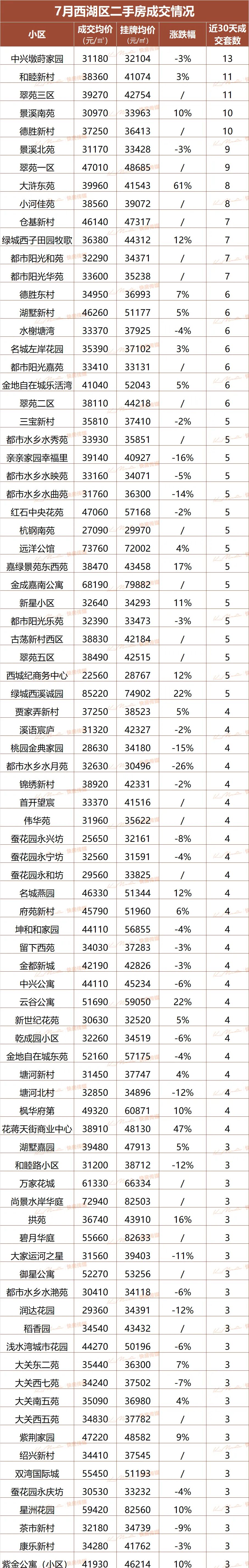 西湖区、余杭区6月二手房成交榜出炉!三墩火力集中